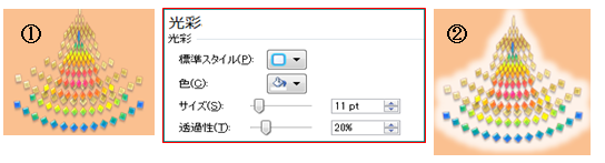 ②①に<光彩(白)>を設定する。